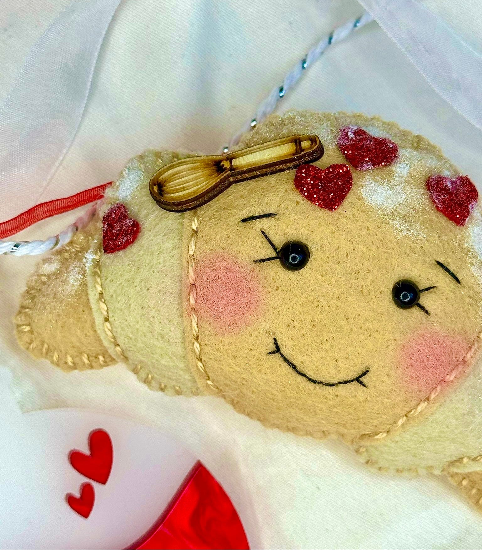 Handmade felt croissant with stitched details